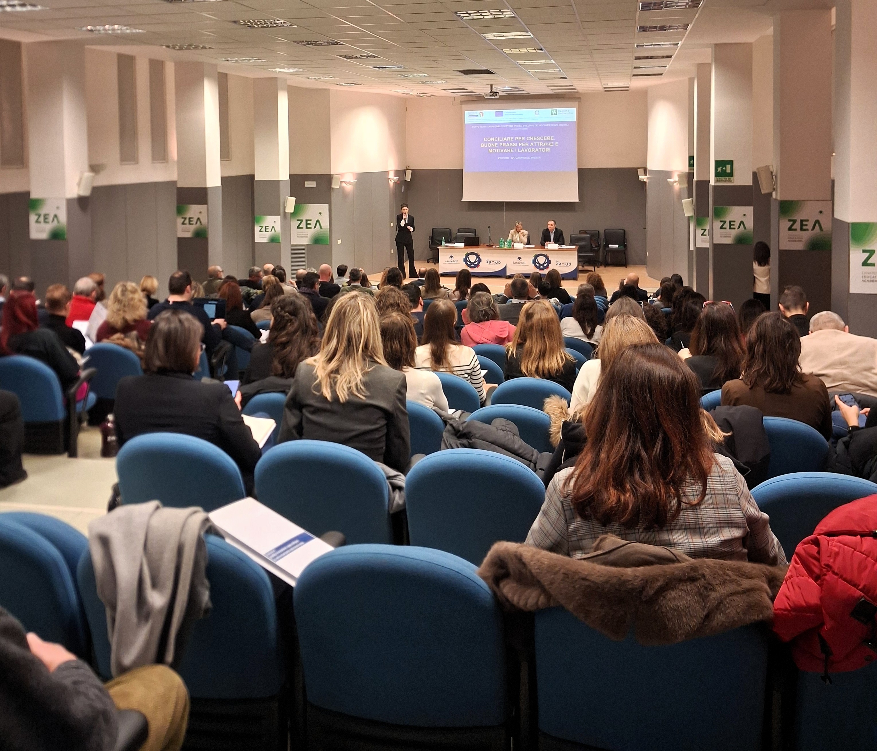 Si è svolto venerdì 20 febbraio, con successo e grande partecipazione, presso l’Aula Magna del CFP Zanardelli l’evento “Conciliare per crescere – Buone prassi per attrarre e motivare i lavoratori”, promosso dalla Provincia di Brescia insieme agli enti partner e la rete di supporto nell’ambito del Patto territoriale multisettore per lo sviluppo delle competenze digitali – ID 5423683, iniziativa di Regione Lombardia finalizzata a rafforzare le competenze e la competitività del territorio.