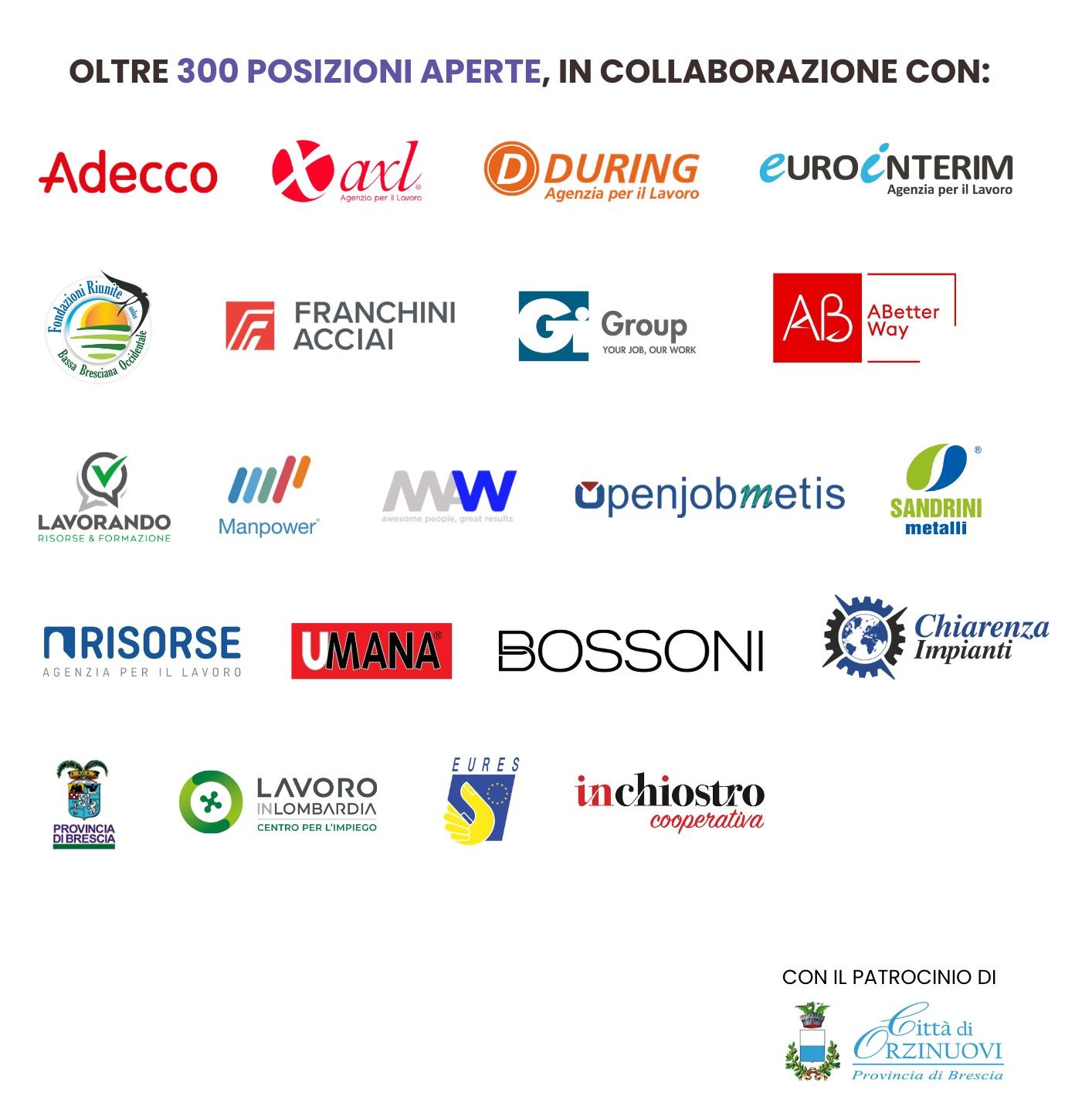 L’iniziativa, patrocinata dal Comune di Orzinuovi, è realizzata in collaborazione con oltre 20 agenzie per il lavoro e aziende attive sul territorio.