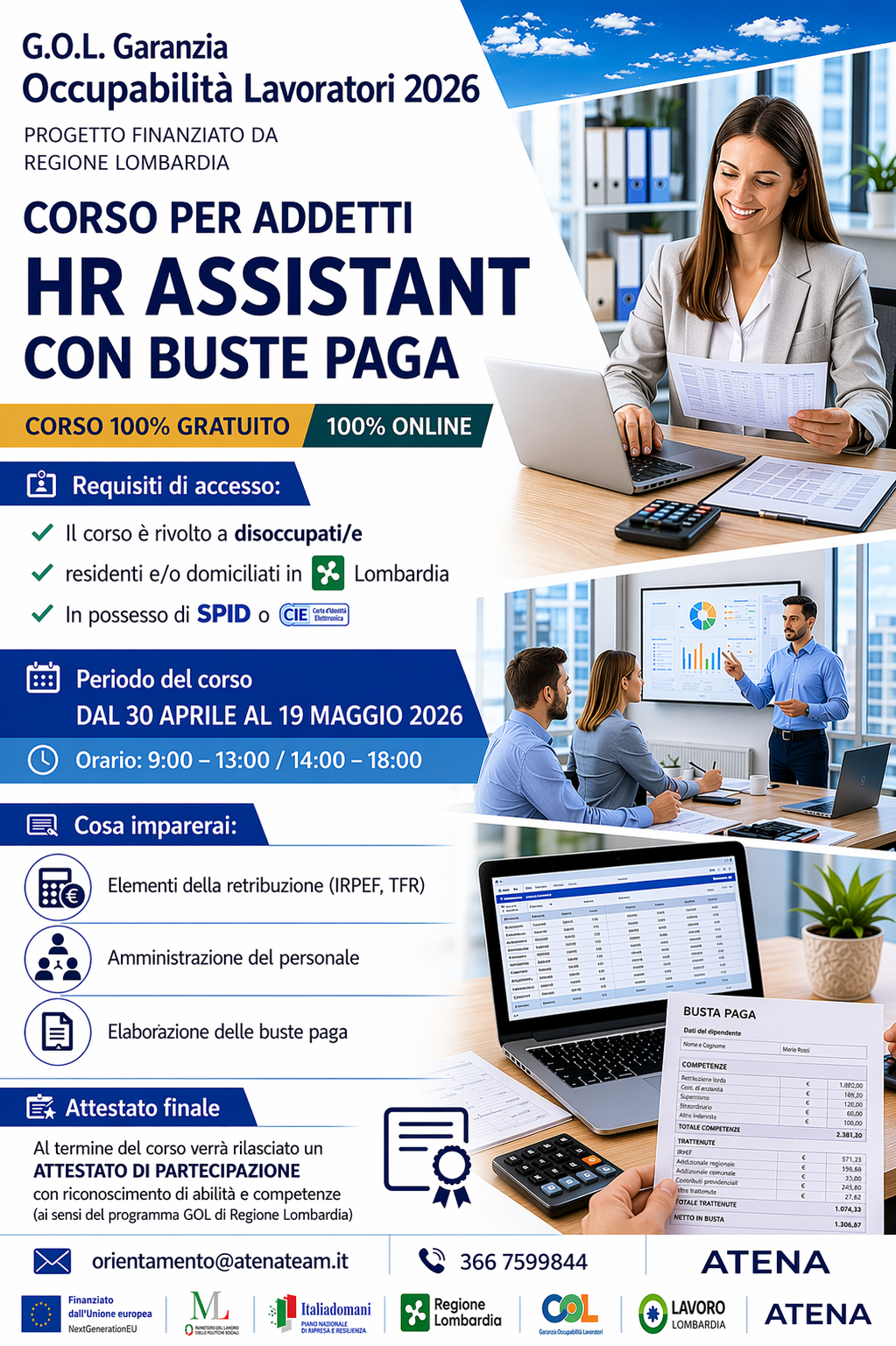 Addetto delle risorse umane con buste paga Dal 23 aprile al 12 maggio – 100h - 100% online – orario full time (9-13/14-18) Consulta la locandina (png - 2 MB)