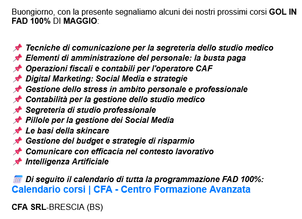Codice offerta: CFASegreteria dello studio medico - busta paga - operatore CAF - Digital Marketing - AI -