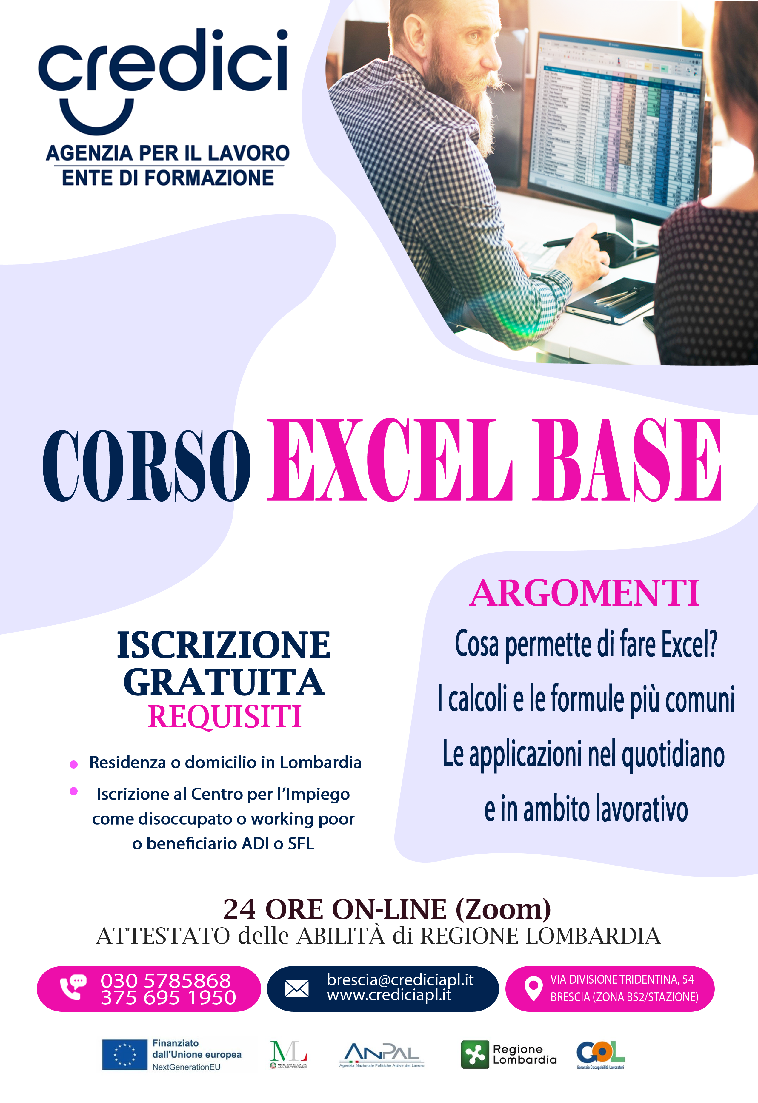 Locandina Corso Excel base Periodo: dal 10 al 23 dicembre 2025 Durata: 24 ore (dalle 09:00 alle 13:00) Dove: FAD, online Per maggiori informazioni consultare la locadina GOL - Credici (png - 3 MB)