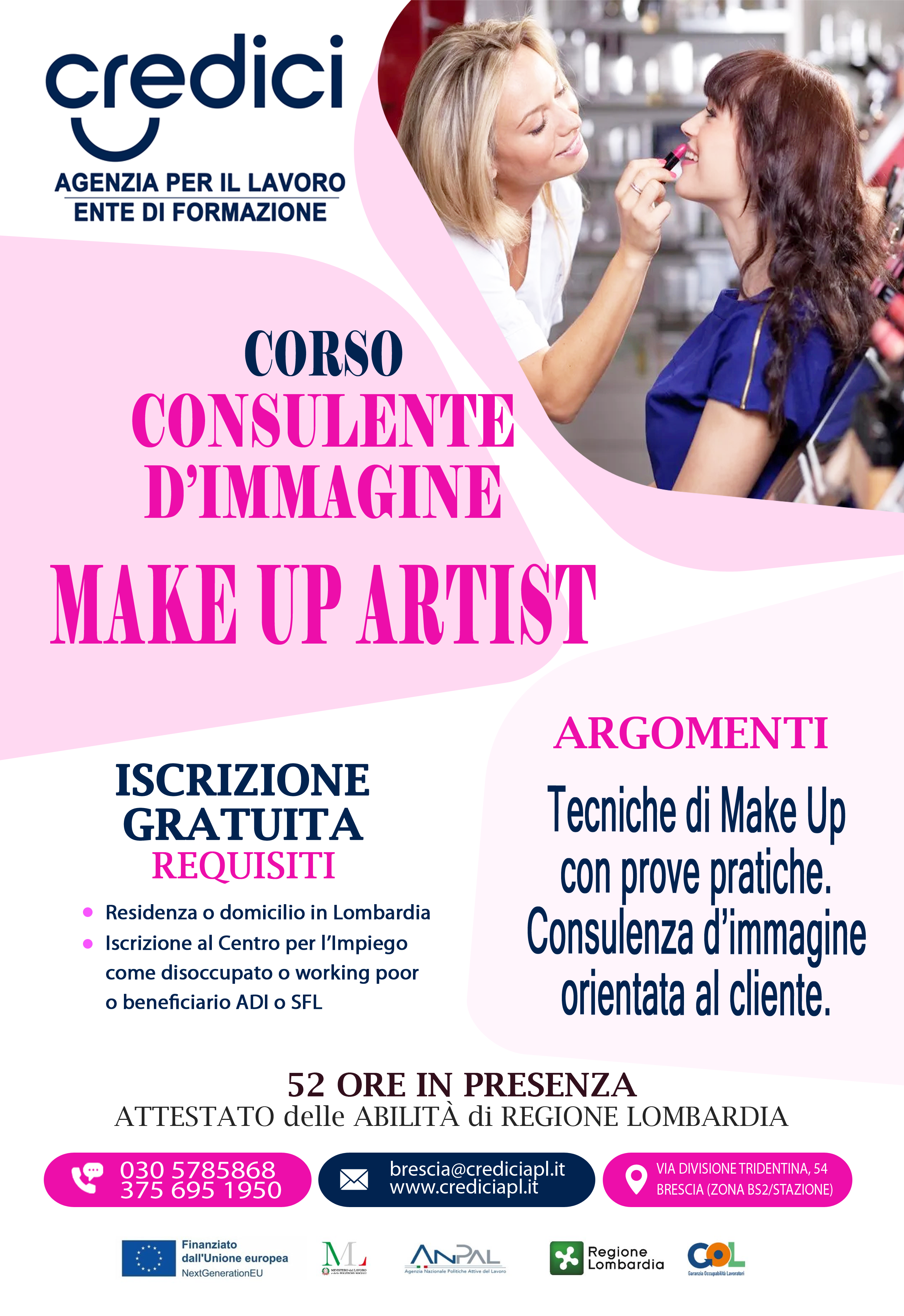 Locandina Corso Consulente d'immagine Make UP Artist: Periodo: dal 9 al 23 dicembre 2025 Durata: 52 ore (dalle 09:00 alle 13:00) Dove: in presenza, sede di Credici SRL Per maggiori informazioni consultare la locadina GOL - Credici (png - 3 MB)