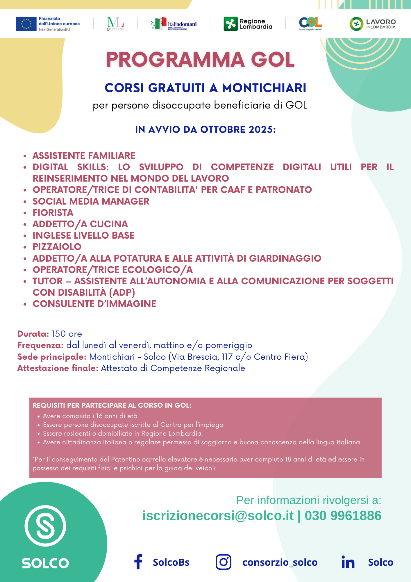 Cliccando su 'Conferma e invia' procedi all'invio dell'autocandidatura per l'offerta Corso GOL Solco Montichiari - ottobre
