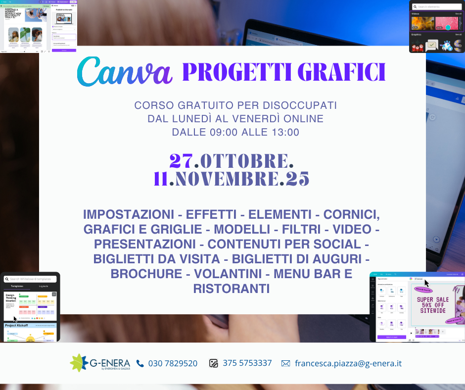 Descrizione Il corso, gratuito per disoccupati, si svolgerà dal lunedì al venerdì dalle 9 alle 13 completamente online. Data di inzio: 27 ottobre 2025 Per tutti i dettagli visualizza la locandina. Locandina (png - 436 KB)