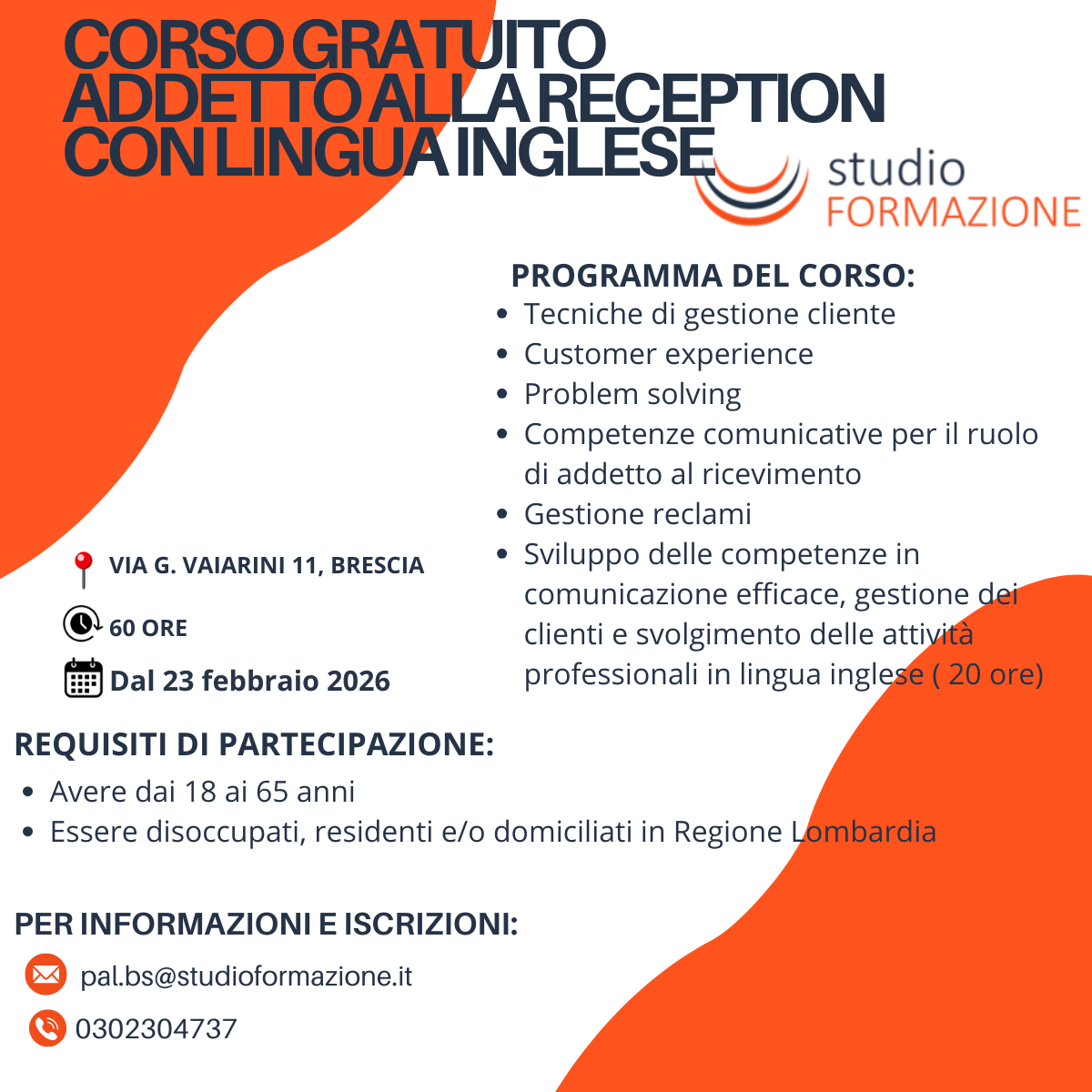 Corso GOL "Addetto alla reception con lingua inglese" - Studio Formazione
