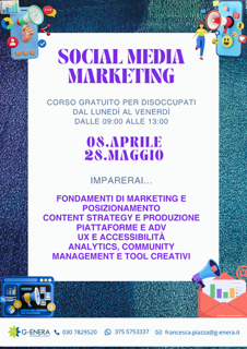 Locandina Corso GOL "Social media marketing" Quando? Dal 8 aprile al 28 maggio 2026 Dove? Energheia Per tutti i dettagli visualizza la locandina. Locandina (png - 109 KB)