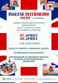 Locandina Corso GOL Inglese intermedio Quando? Dal 7 aprile al 30 aprile Dove? online Per tutti i dettagli visualizza la locandina. Locandina (png - 83 KB)