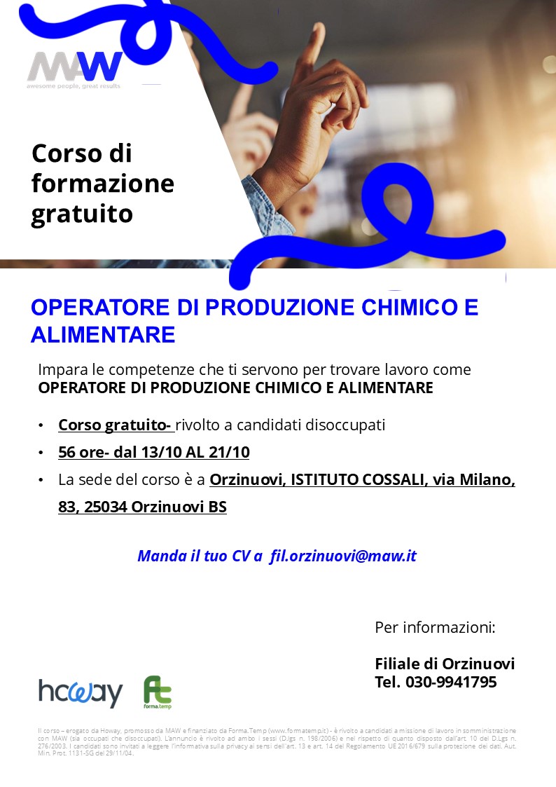 Operatore di produzione chimico e alimentare Corso di formazione gratuito per disoccupati Corso gratuito per disoccupati (jpg - 151 KB)