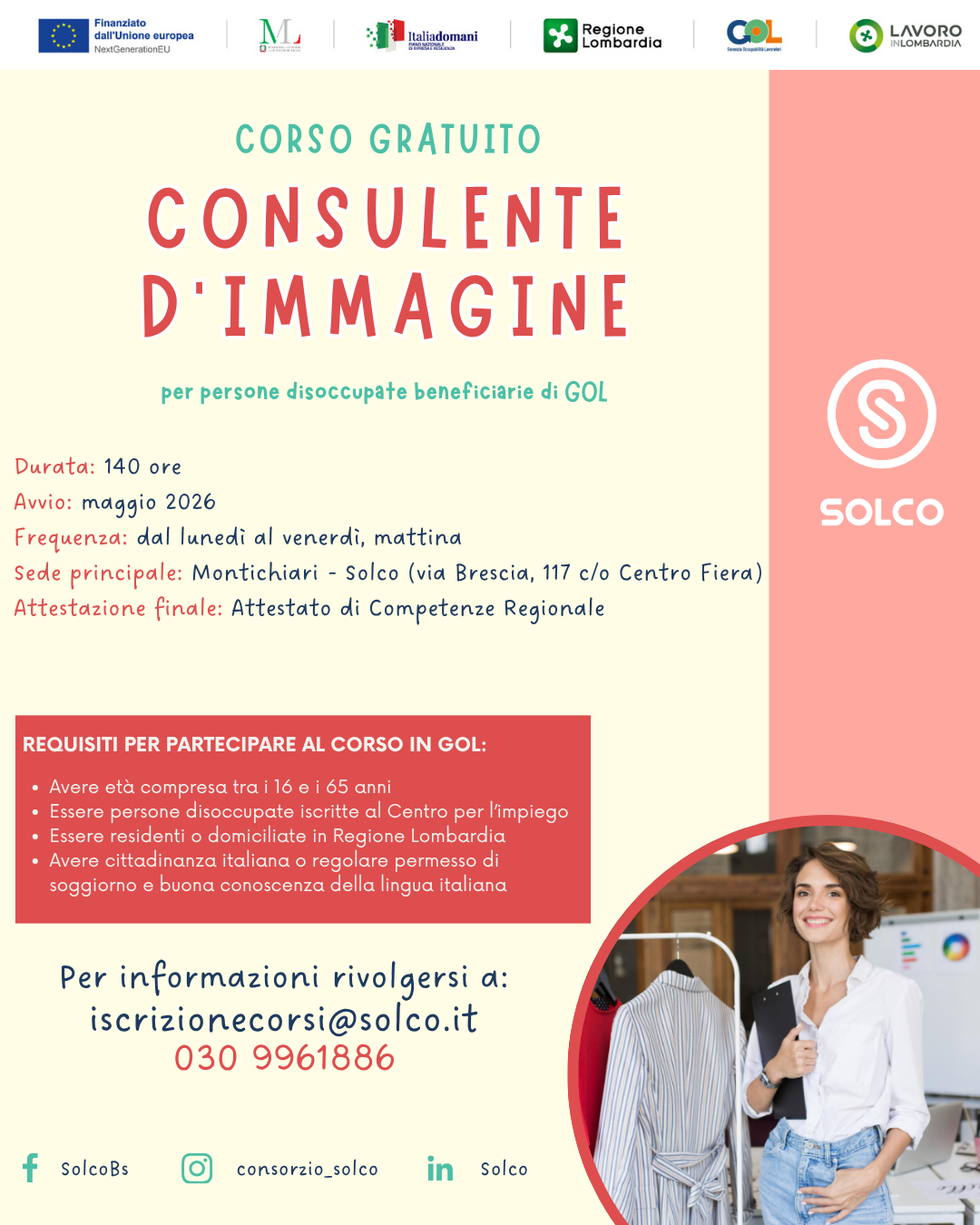 Modalità di erogazione: In presenza presso la sede di Montichiari (BS) - Solco (via Brescia, 117 c/o Fiera); dal lunedì al venerdì, mattina.